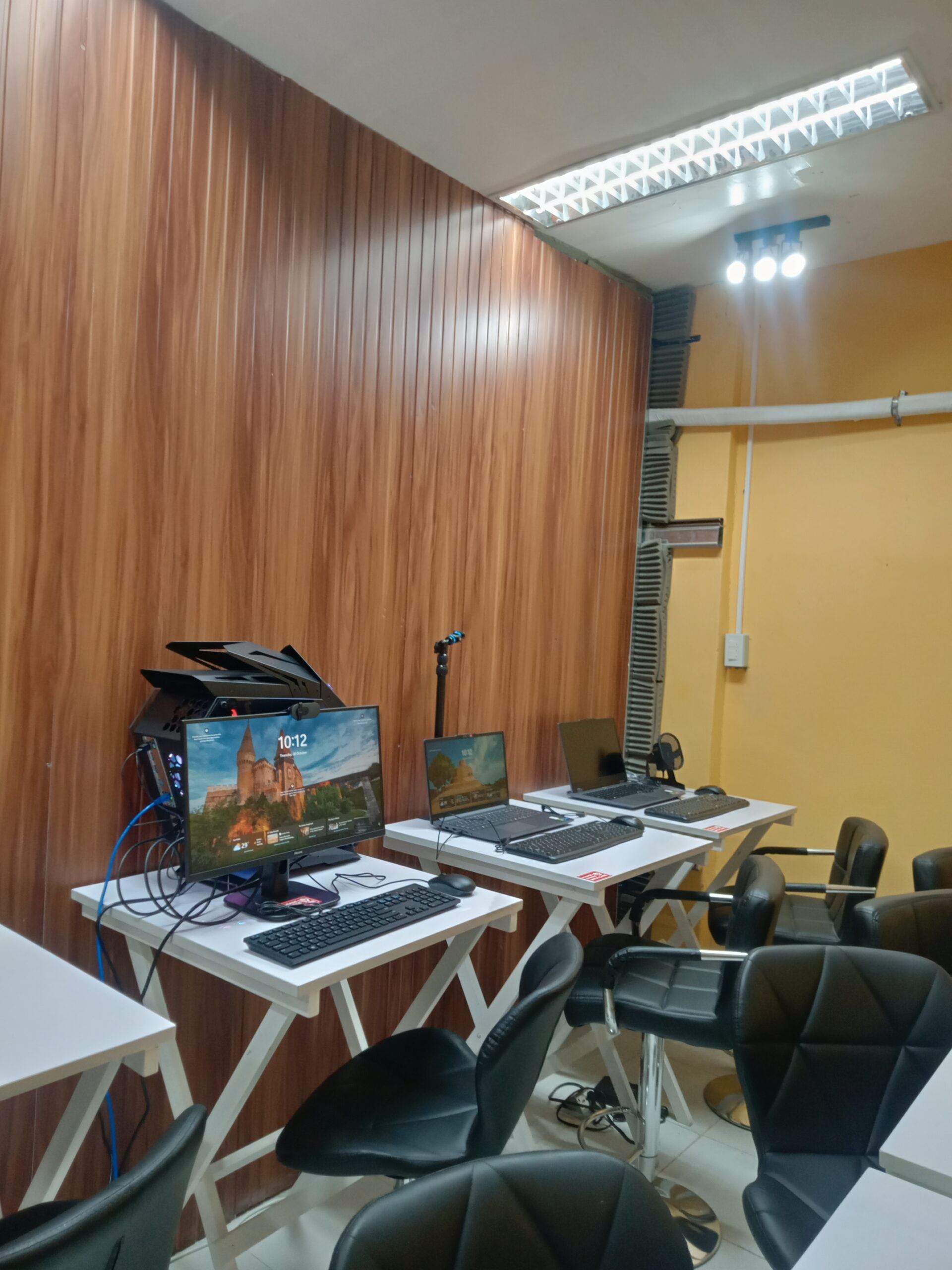 For the freelancers who are looking for a quiet place to work, our workstation choices are either a laptop or a desktop with webcam, keyboard and mouse, hydraulic chairs, fully air-conditioned with free wifi with VPN. You can bring your own laptop or use one of ours, complete with school and work-related software, audio and video editing software. We can download any software you need. You can even use them for gaming.