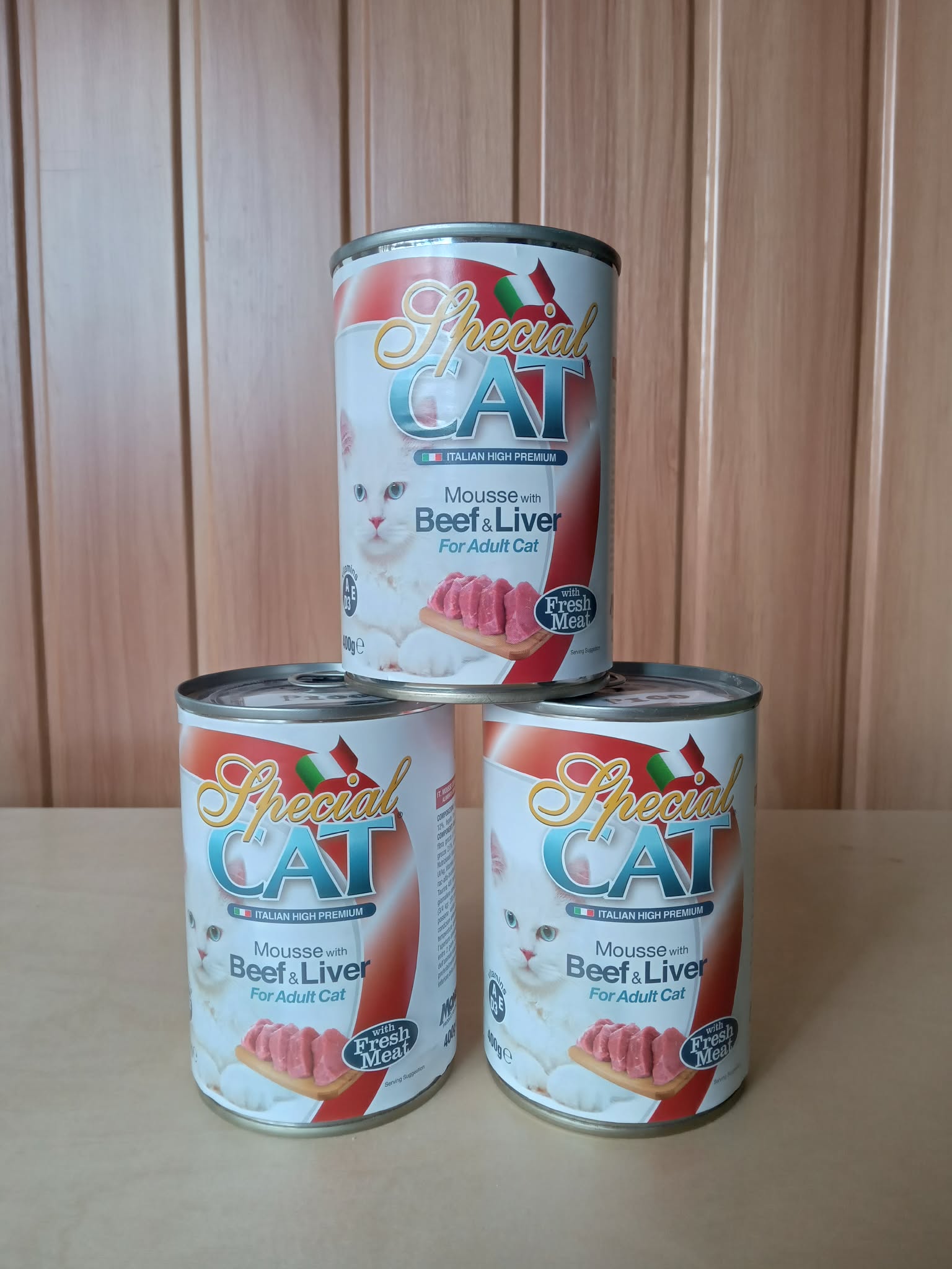 This is Special Cat brand canned beef and liver cat food 400g