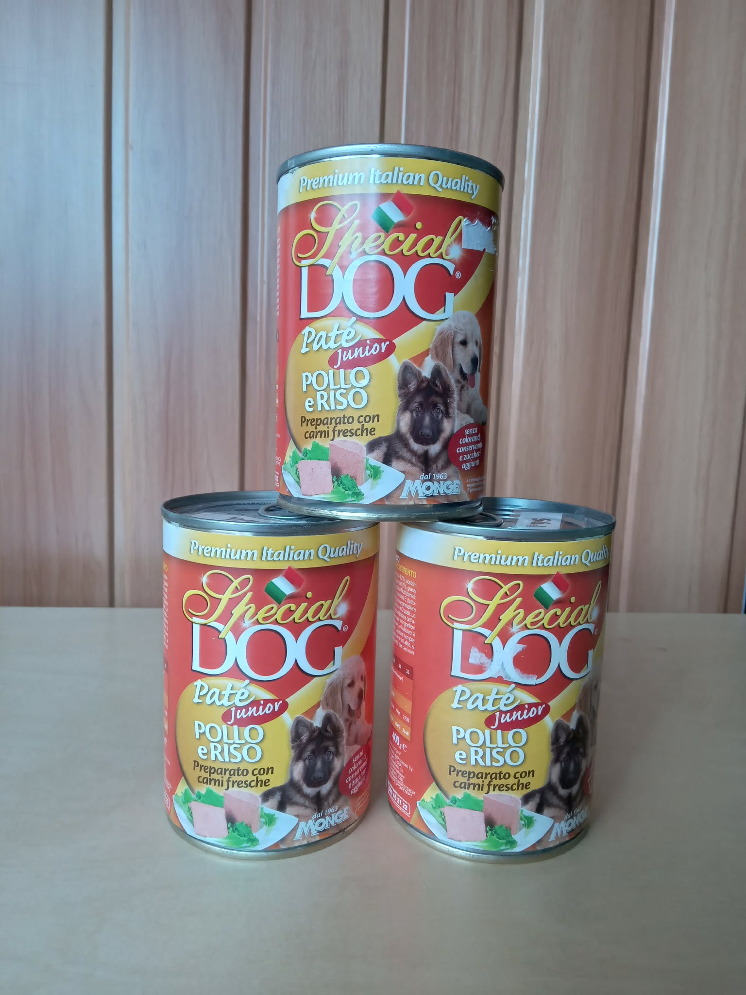 This is Special Dog brand canned chicken and rice dog food (Yellow) 400g